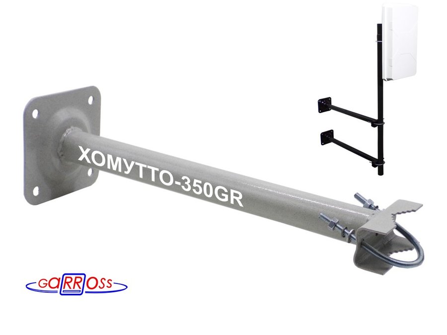 В корзину Купить в 1 клик Кронштейн антенный "ХОМУТТО-350GR-113646" серый, крепление мачт до 51мм к стене, вылет 0,35м, 32мм