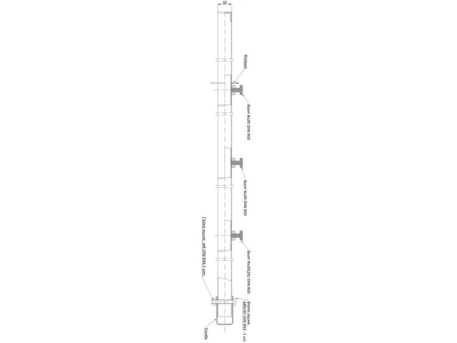- Мачта укомплетована ПОДПЯТНИКОМ и РАСТЯЖКАМИ проволочными, покрытыми МЕДЬЮ