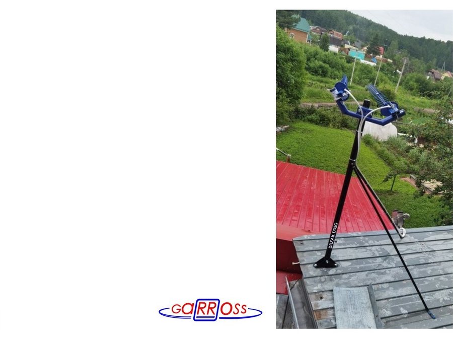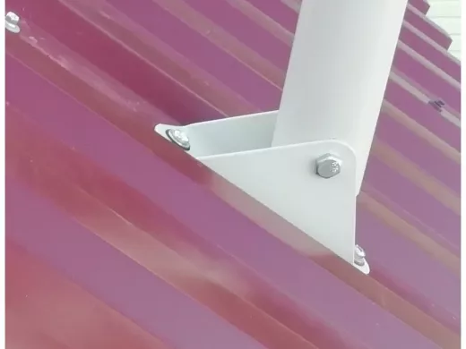 • Наличие жёстких растяжек в виде трубок и качающегося основания позволяют крепить кронштейн-мачту на  кровле с различным наклоном.