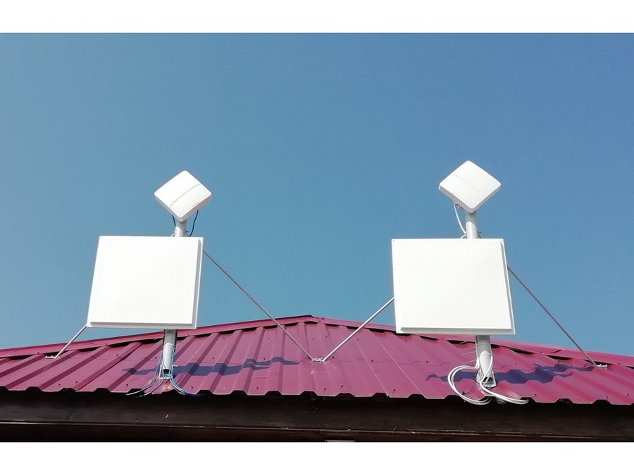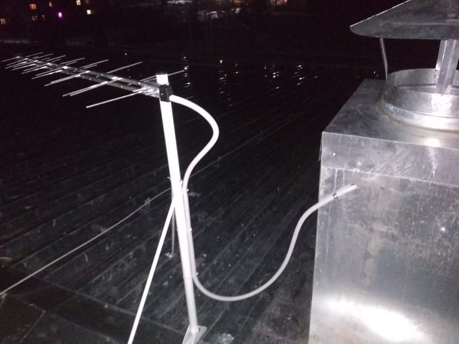 Пример монтажа на одной мачте телевизионной антенны и панельной антенны для беспроводного интернета 3G, 4G