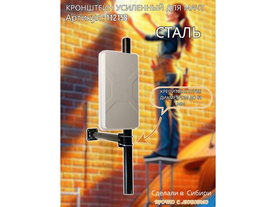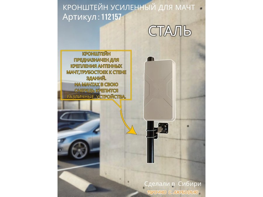 В корзину Купить в 1 клик Кронштейн усиленный для мачт "ВЫННОС-300BK-V1-112157" черный, два хомута, вылет 0,3м, зажим до 51мм