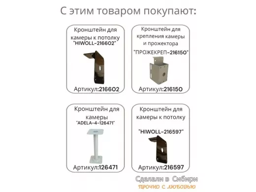 В корзину Купить в 1 клик Кронштейн для поворотной камеры к потолку "HIWOLL-216598" серый, сталь