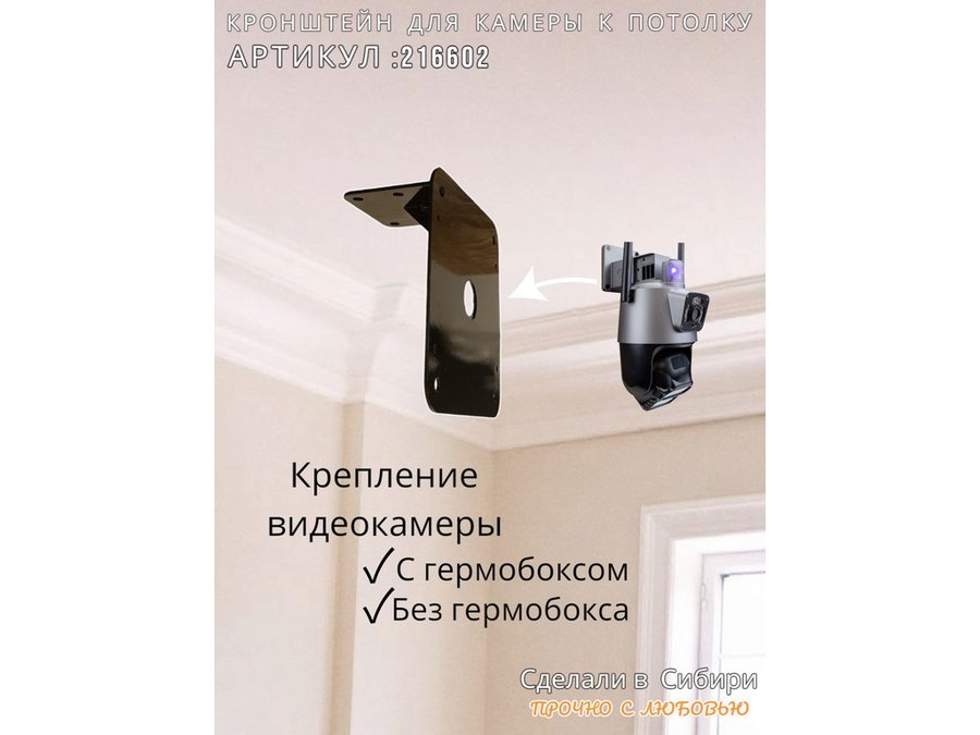 В корзину Купить в 1 клик Кронштейн для поворотной камеры к потолку усиленный "HIWOLL-216602" черный, сталь