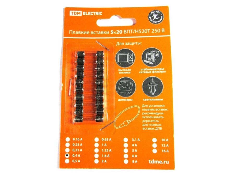 В корзину Купить в 1 клик Плавкая вставка ВПБ6-4 0,45А 250В TDM упаковка (10шт.) SQ0738-0004