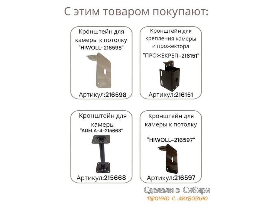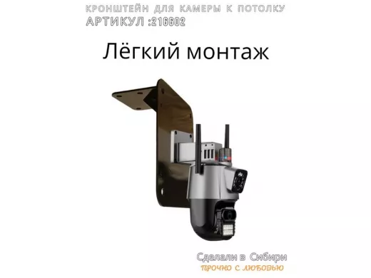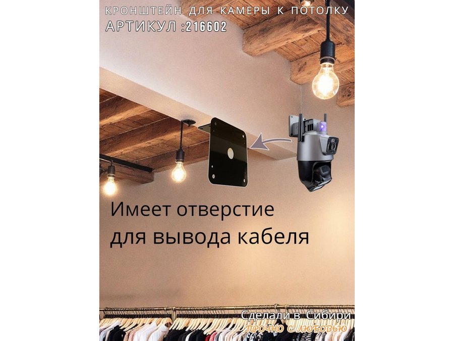 В корзину Купить в 1 клик Кронштейн для поворотной камеры к потолку усиленный "HIWOLL-216602" черный, сталь