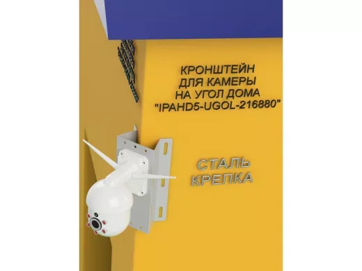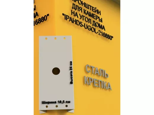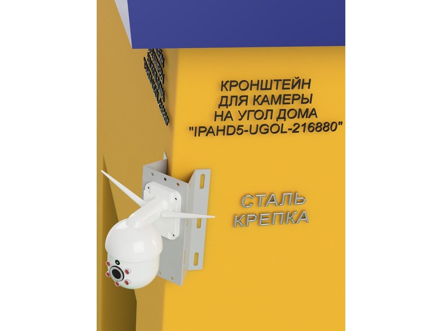 Кронштейн угловой металлический для камеры видеонаблюдения "IPAHD5-UGOL-216880". Подходит для большинства типов видеокамер: цилиндрических, купольных или поворотных