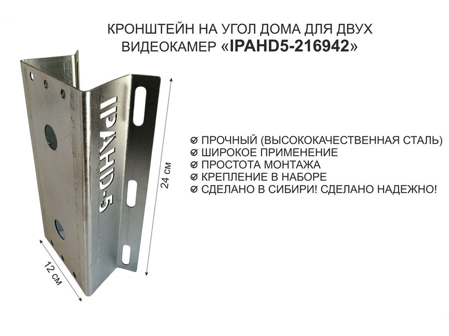 В корзину Купить в 1 клик Кронштейн на угол дома для двух камер видеонаблюдения, 2 отверстия "IPAHD5-216942" оцинкован,24х12см