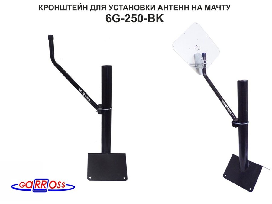 Кронштейн антенный "6G-250-BK" ЧЁРНЫЙ с выносом вверх 0,45м, вылет 0,25м,с хомутом на трубу до 51мм