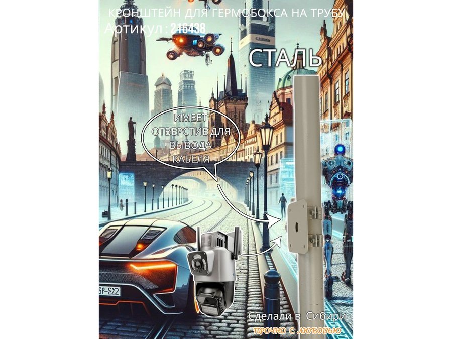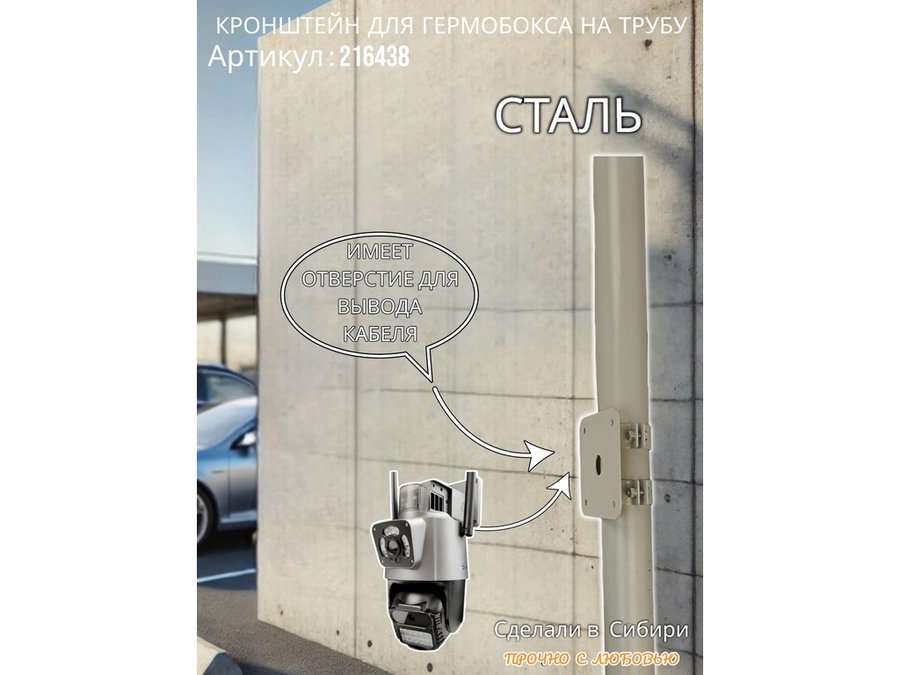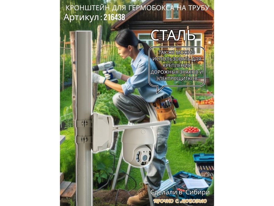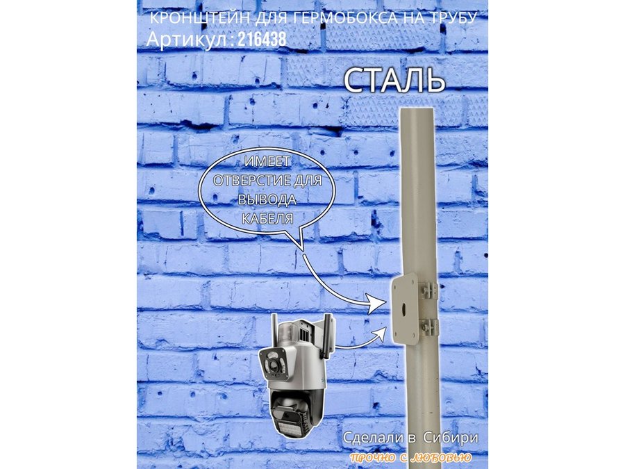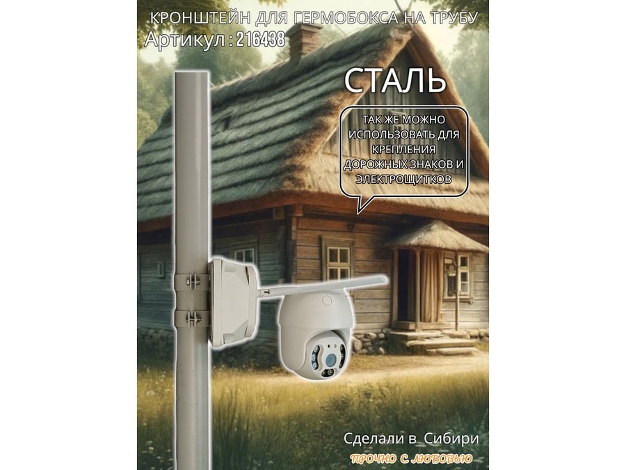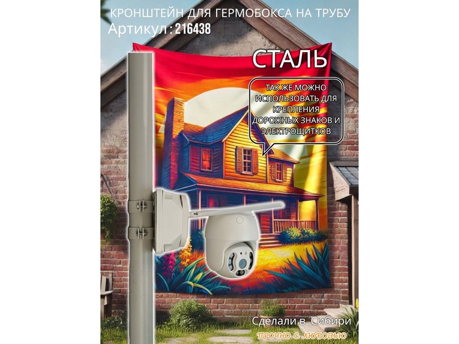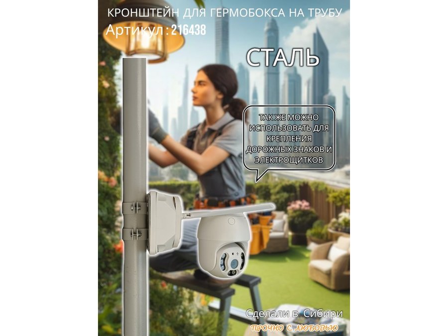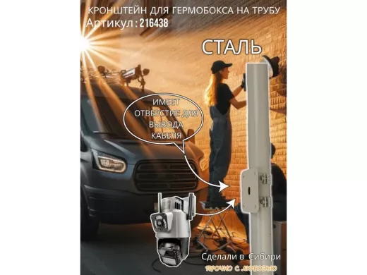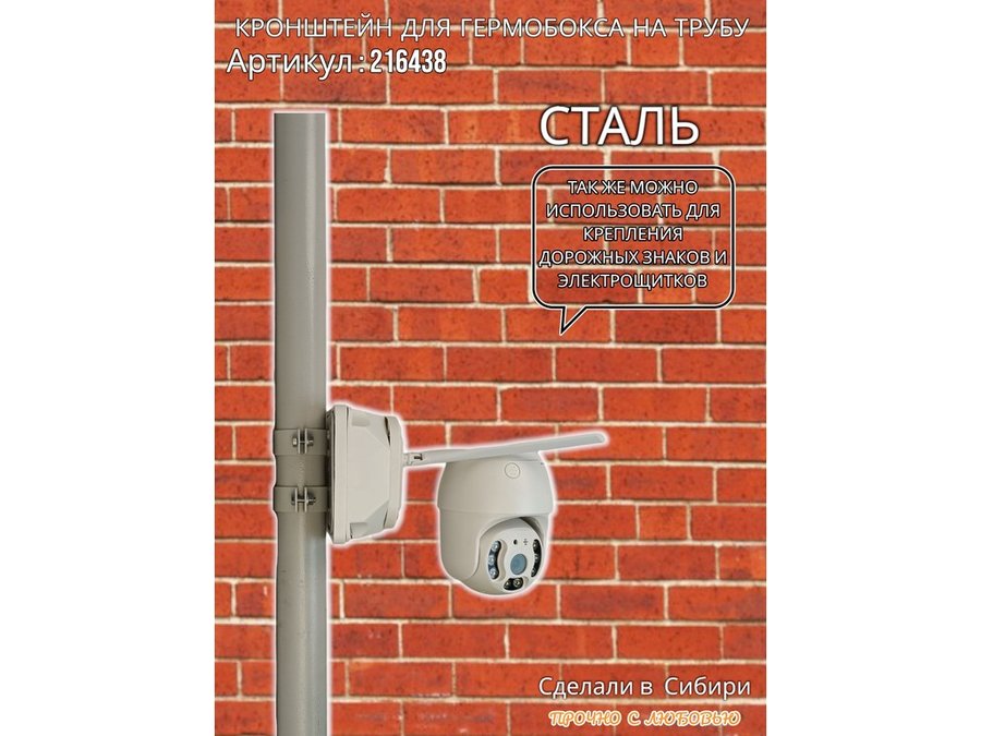 • Кронштейн позволяет быстро зафиксировать гермобокс с видеокамерой на трубу.