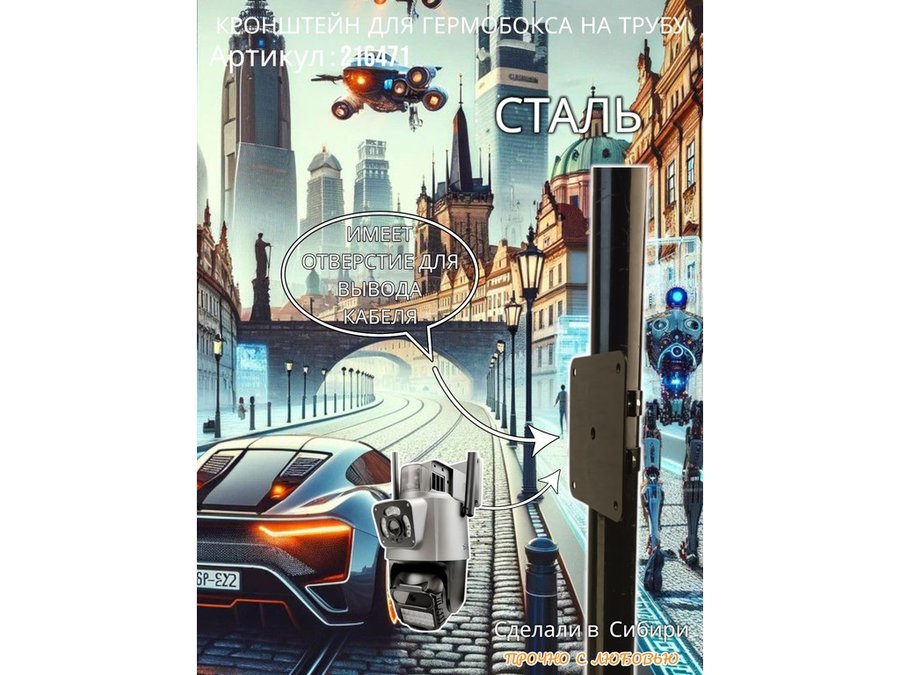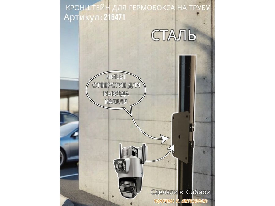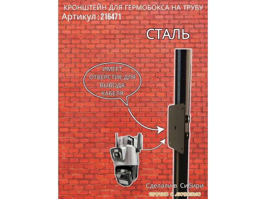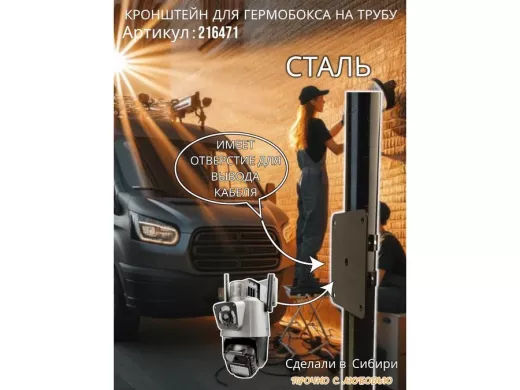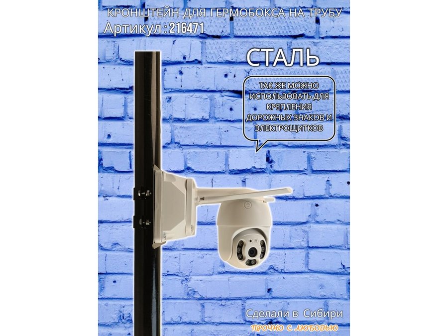 • Кронштейн позволяет быстро зафиксировать гермобокс с видеокамерой на трубу.