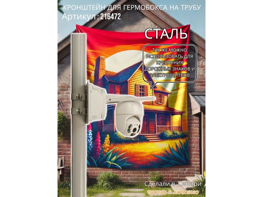 • Универсальный усиленный кронштейн предназначен для крепления гермобоксов,коробок с видеокамерой, дорожных знаков ,электрощитков на трубе диаметром 50мм.