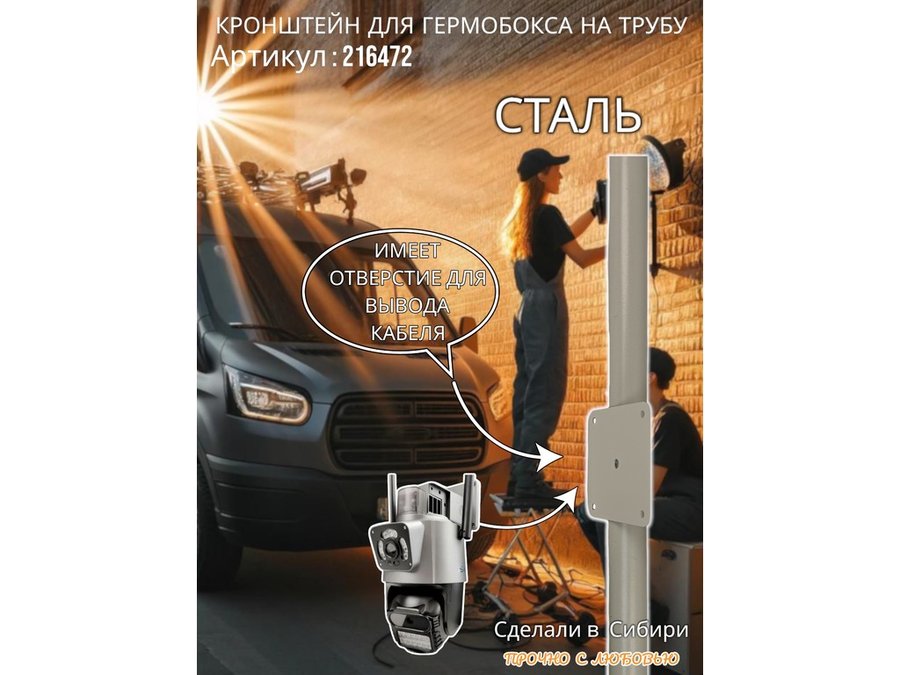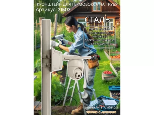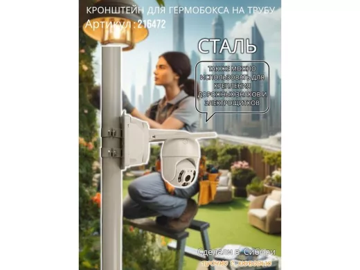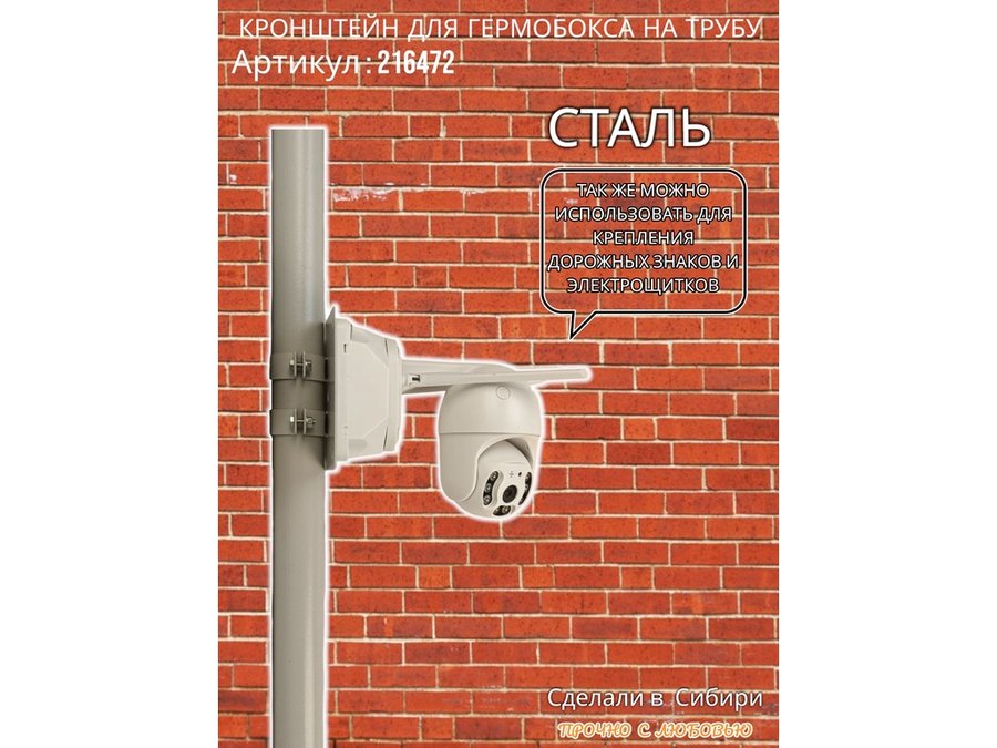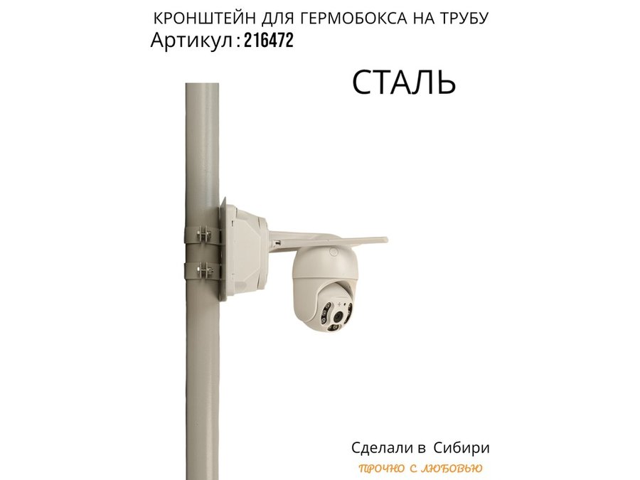 • Кронштейн позволяет быстро зафиксировать гермобокс с видеокамерой на трубу.