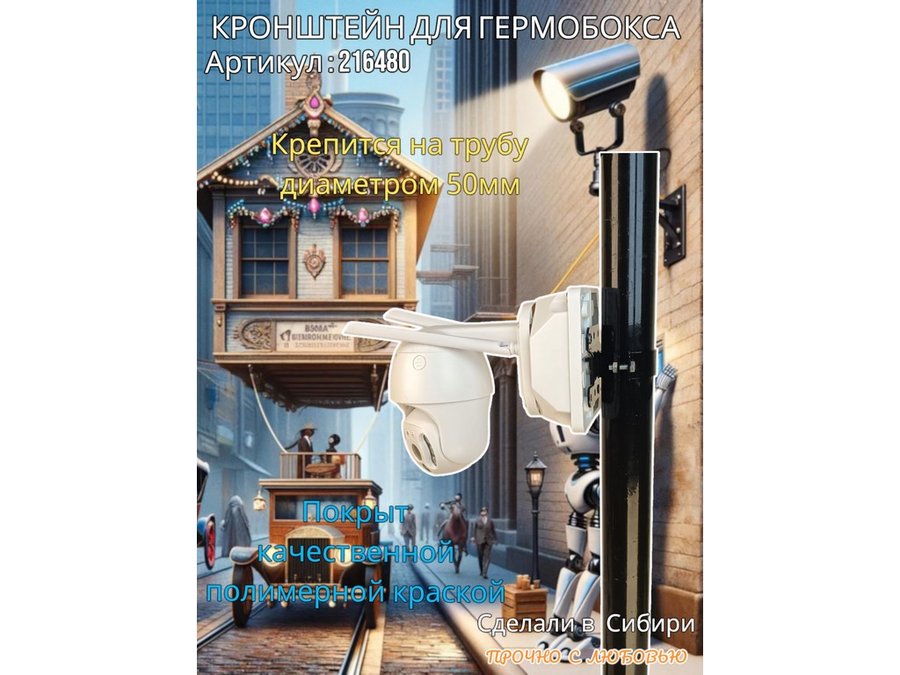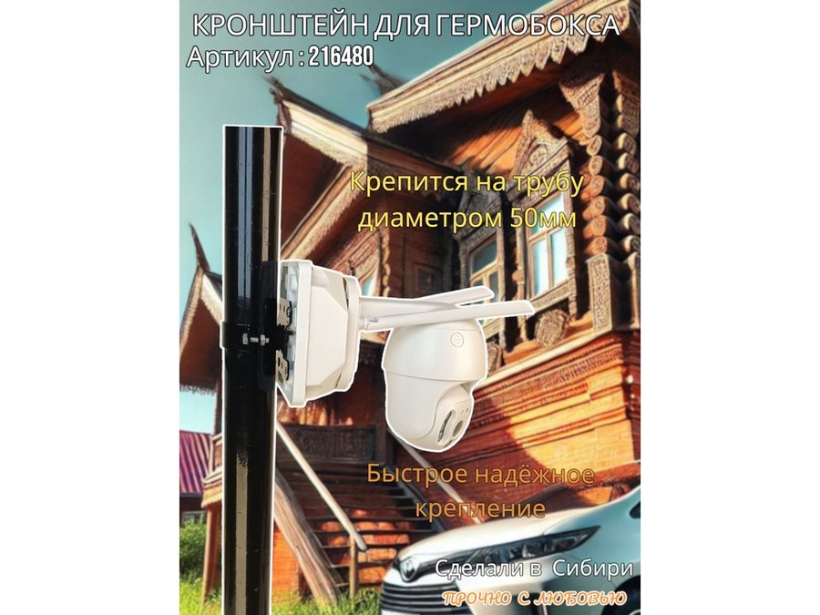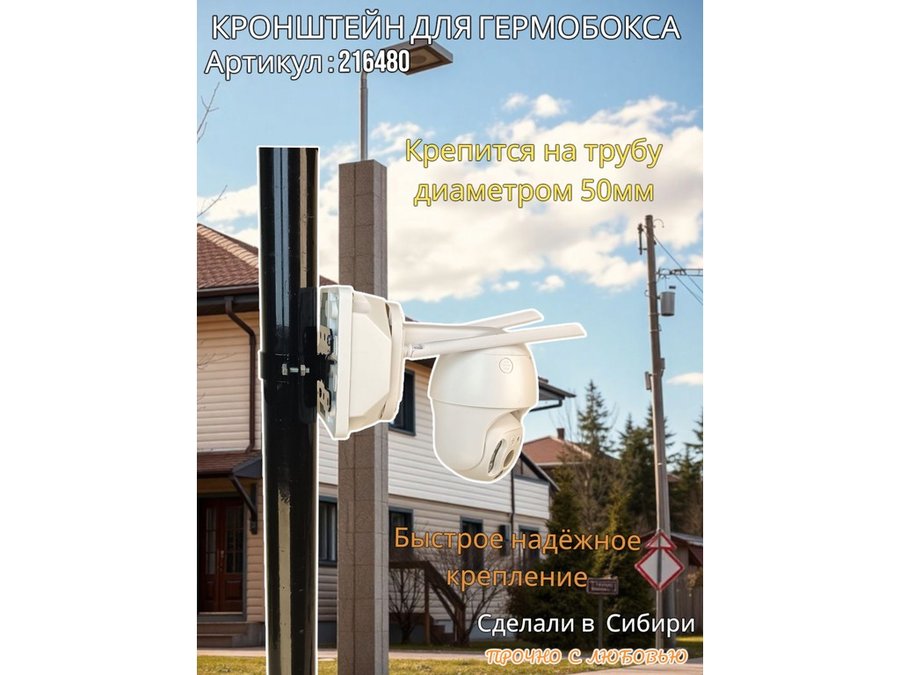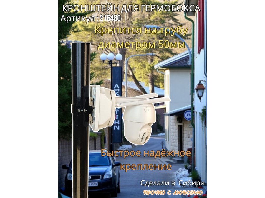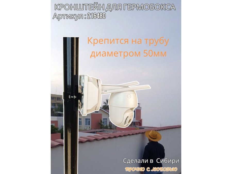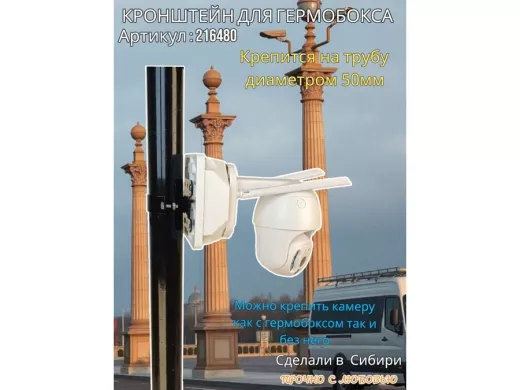 • Кронштейн позволяет быстро зафиксировать гермобокс с видеокамерой на трубу.