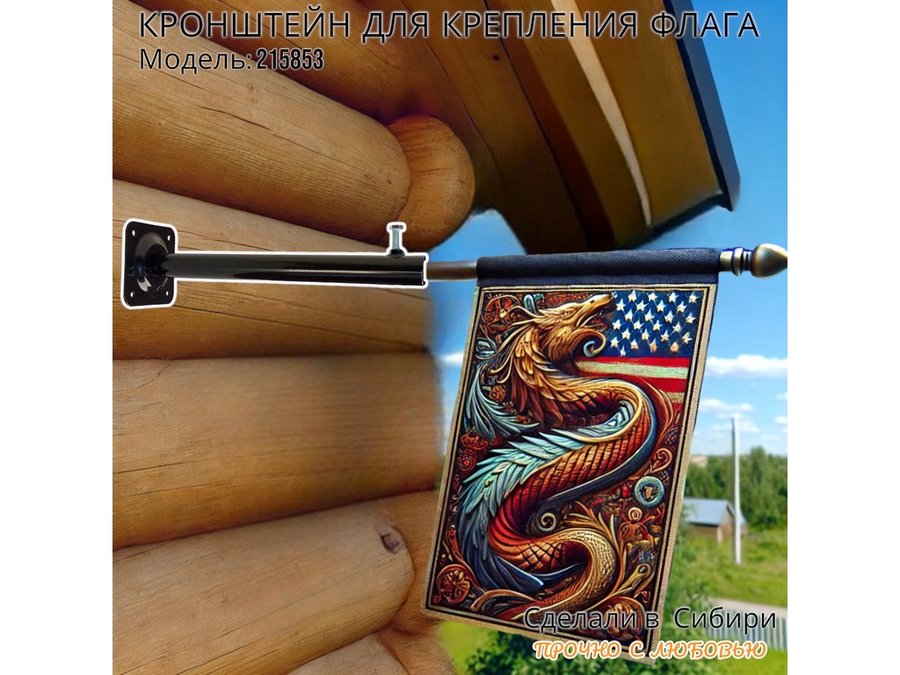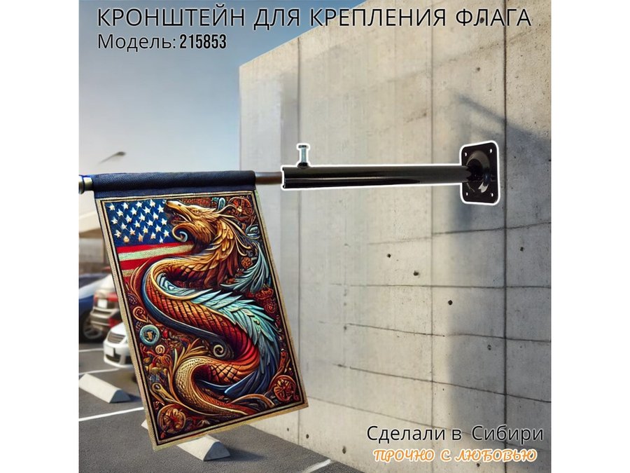 Кронштейн для крепления одного флага на стене угол 90гр вылет 35см "ФЛАГОКРЕП-215853" сталь, черный