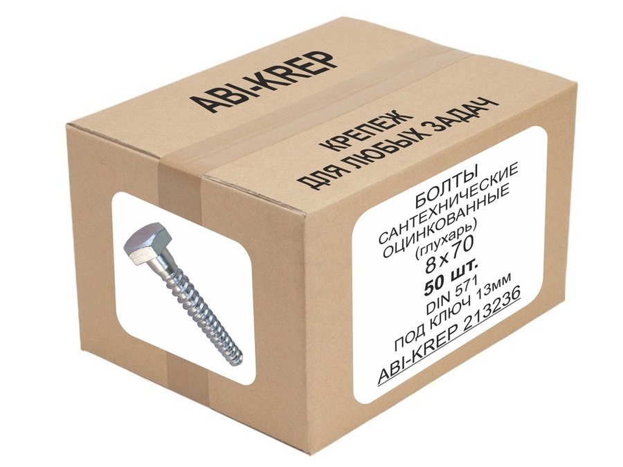 В корзину Купить в 1 клик Болты сантехнические оцинкованные 8х 70 DIN 571 ( 50шт) "ABI-KREP 213236" 1,082кг, Глухарь, 21,64гр