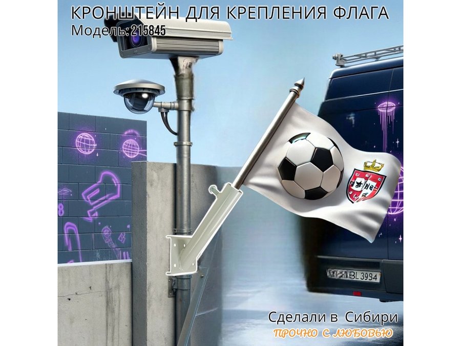 Кронштейн позволяет быстро зафиксировать флаг или кашпо с цветами под углом 45 градусов.