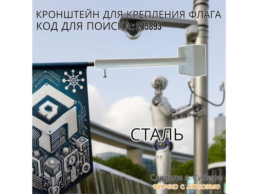 Кронштейн позволяет быстро и прочно зафиксировать флаг или вазон на столбе без его сверления.