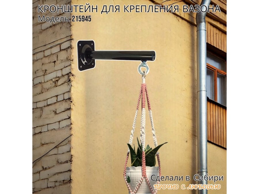 В корзину Купить в 1 клик Кронштейн для крепления кашпо, вазона на стене угол 90гр вылет 25см "ПРОСЕКИНО-215945" сталь, черный