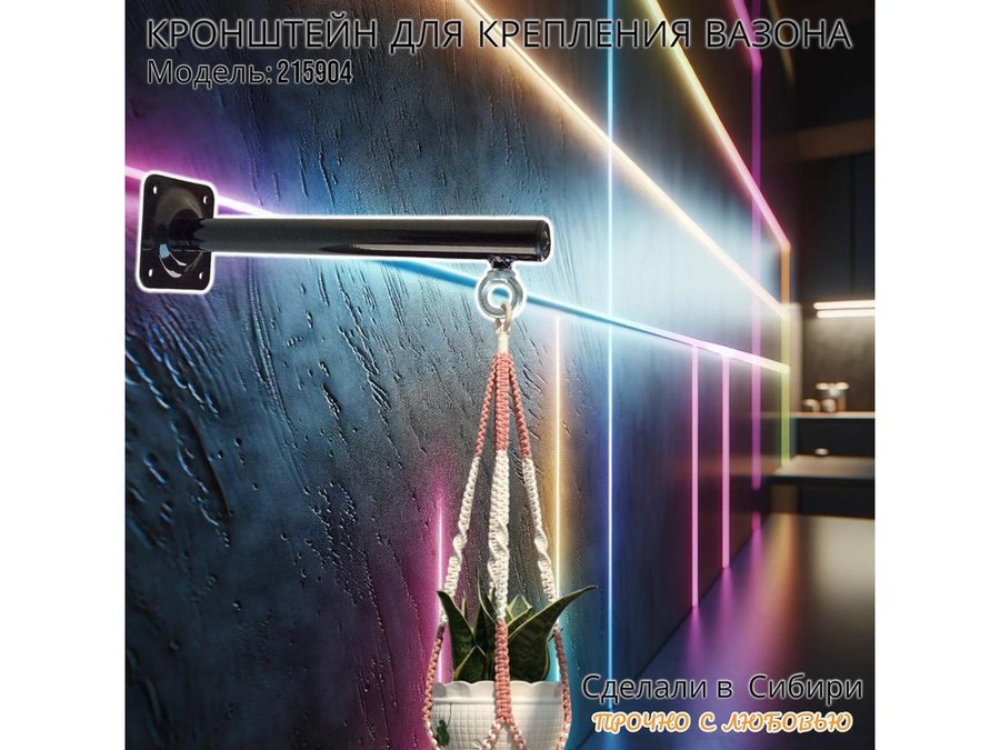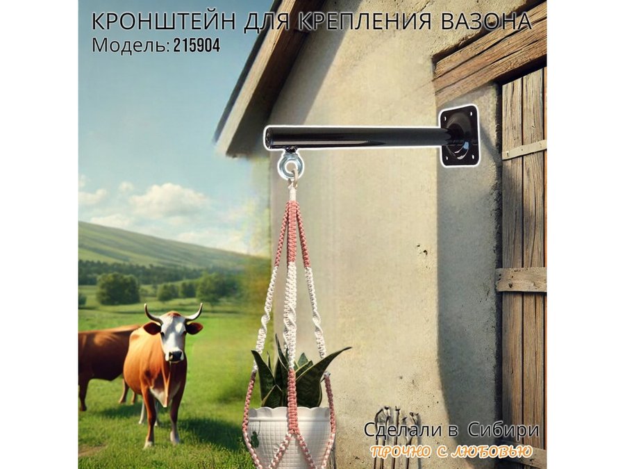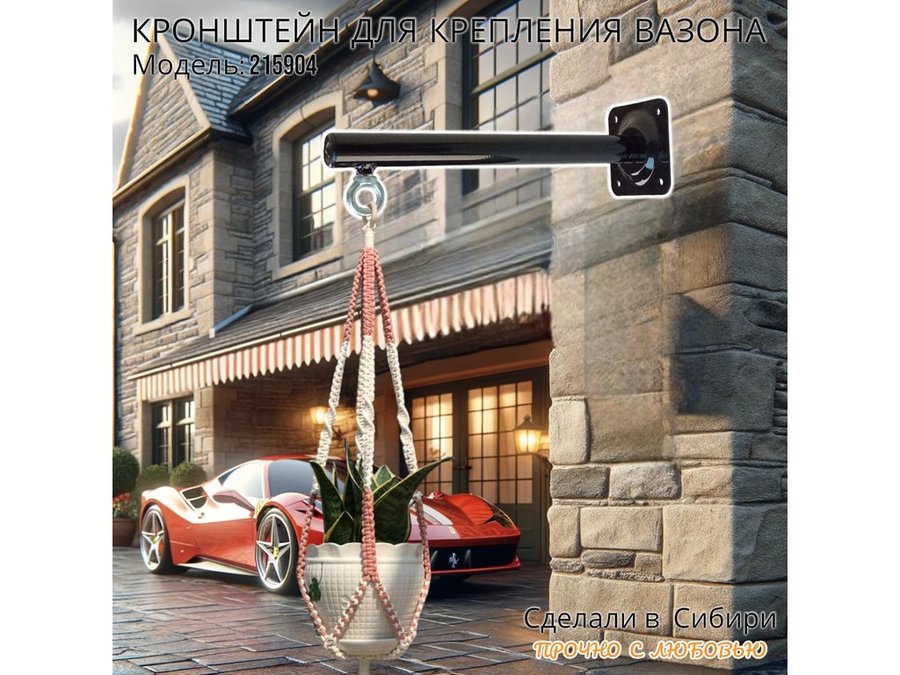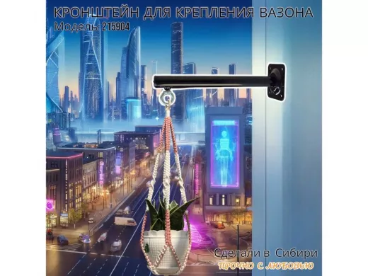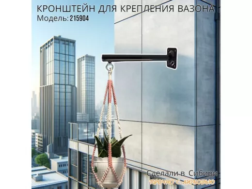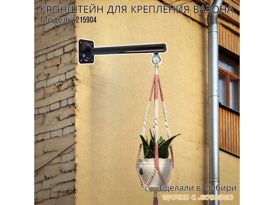Кронштейн для крепления кашпо, вазона на стене угол 90гр вылет 35см "ПРОСЕКИНО-215904" сталь, черный