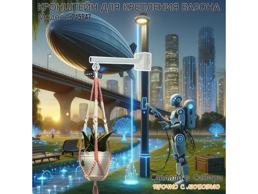 Кронштейн позволяет быстро зафиксировать флаг и вазон на столбе.