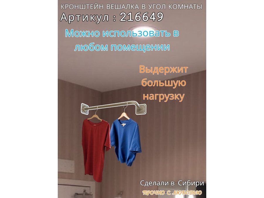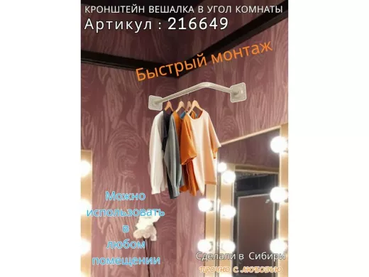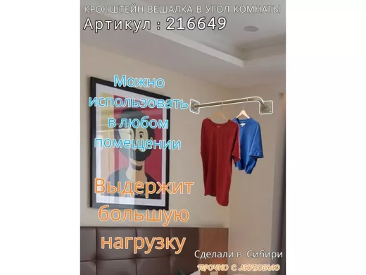 - Кронштейн для плечиков с одеждой, используется для установки в угол комнаты или к потолку.
