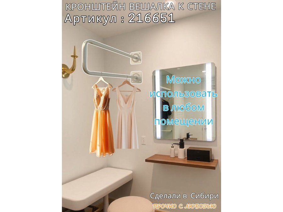 • Благодаря п-образной форме, вешалка занимает меньше места, что особенно актуально для небольших помещений.