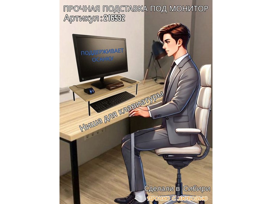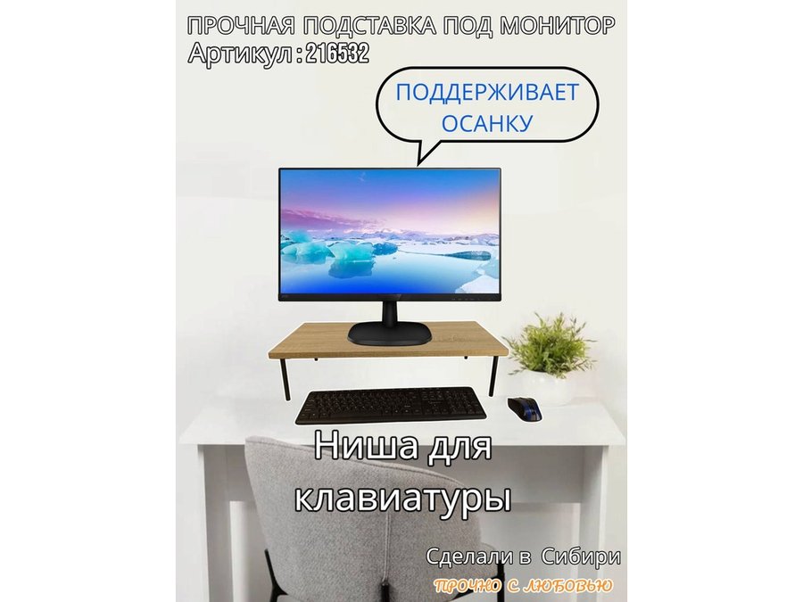 - Универсальная подставка для монитора имеет лаконичный и стильный дизайн, идеально подойдет для любого интерьера.