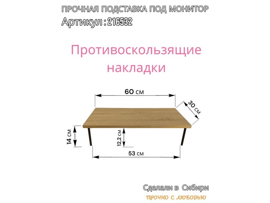Подставка под монитор на стол 60х30см высота 14см "ABBIKUS-216532" дуб сонома, черные ножки
