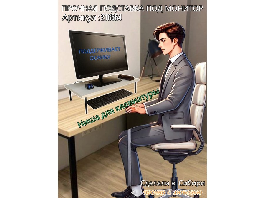 • Универсальная подставка для монитора имеет лаконичный и стильный дизайн, идеально подойдет для любого интерьера.