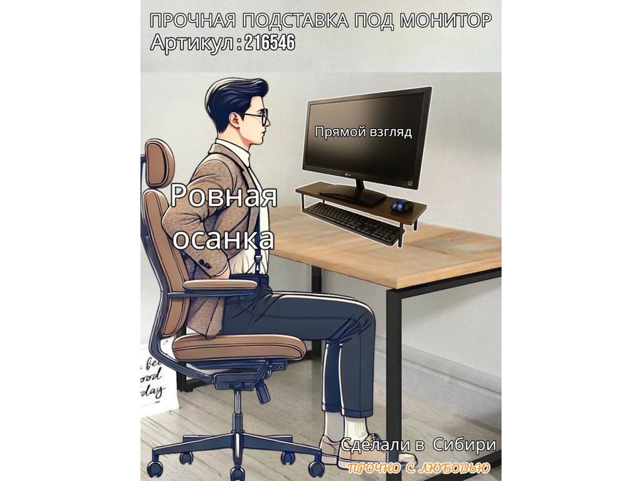 Универсальная подставка для монитора имеет лаконичный и стильный дизайн, идеально подойдет для любого интерьера.