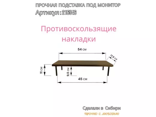 Подставка под монитор на стол 54х17,5см высота 11см, венге "ABBIKUS-216546" черные ножки