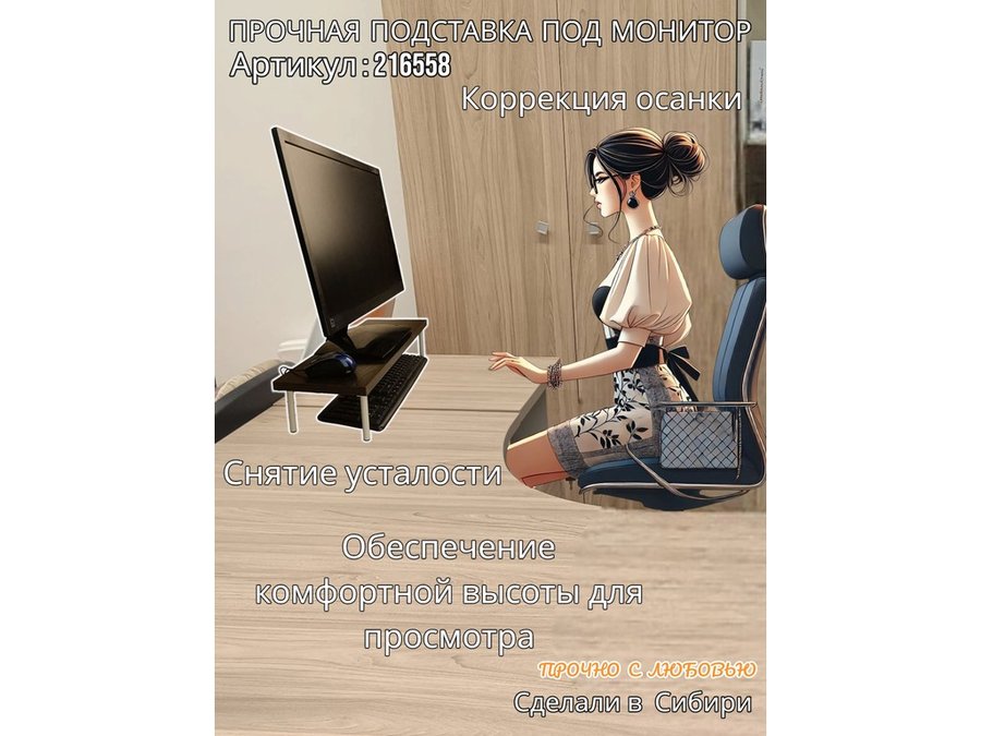 • Универсальная подставка для монитора имеет лаконичный и стильный дизайн, идеально подойдет для любого интерьера.
