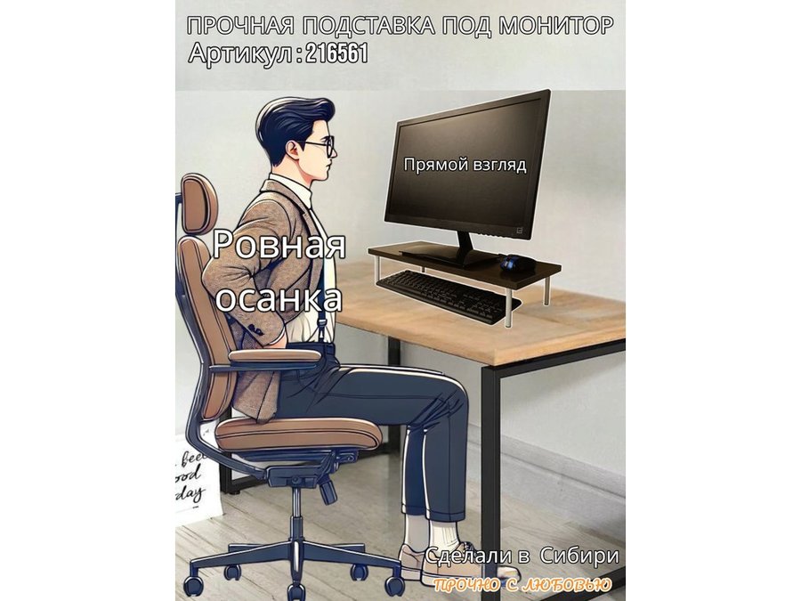 - Универсальная подставка для монитора имеет лаконичный и стильный дизайн, идеально подойдет для любого интерьера.