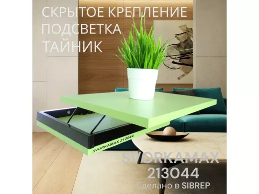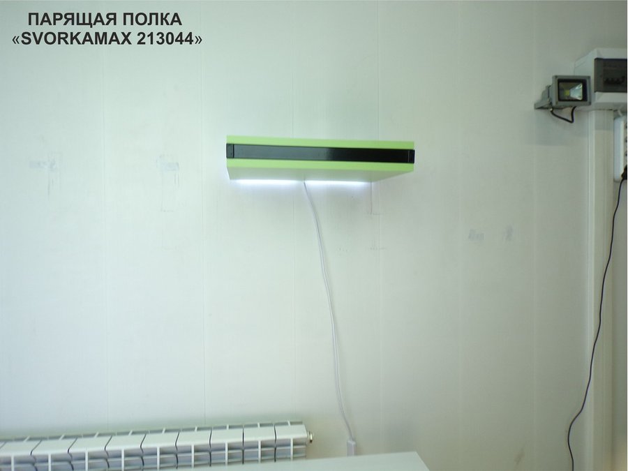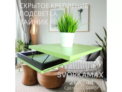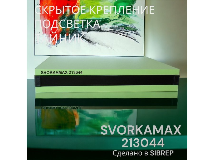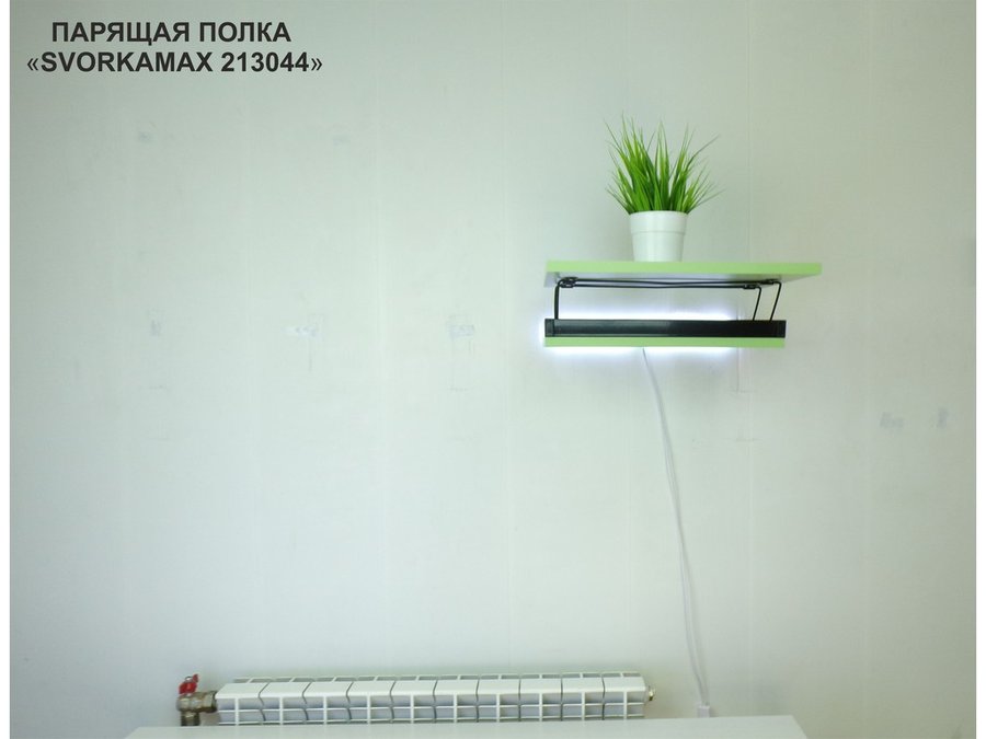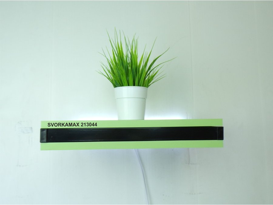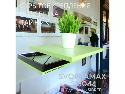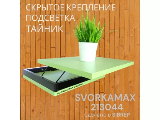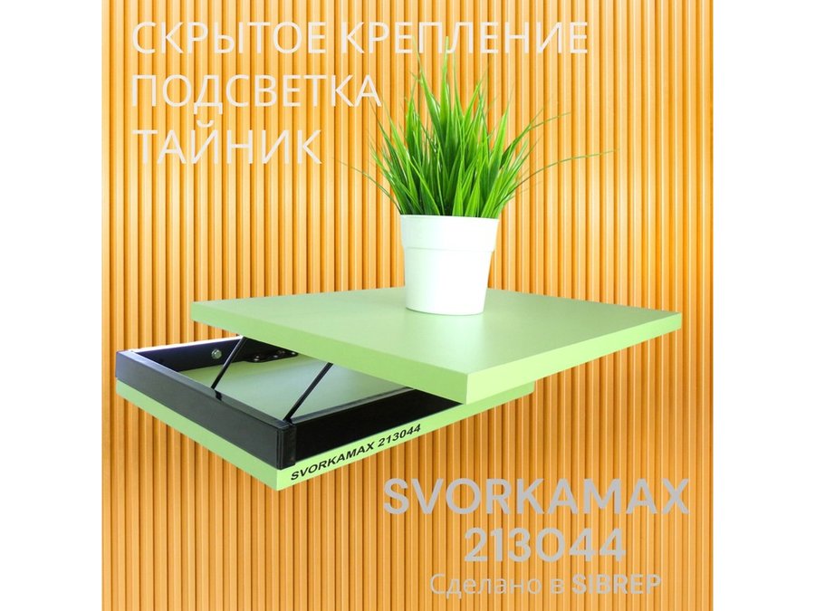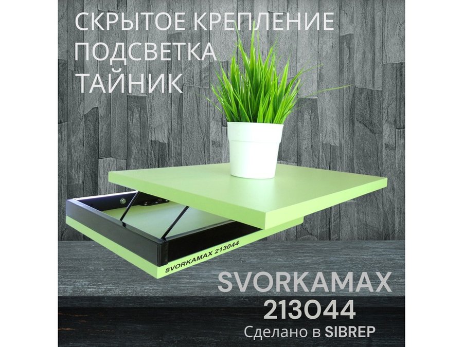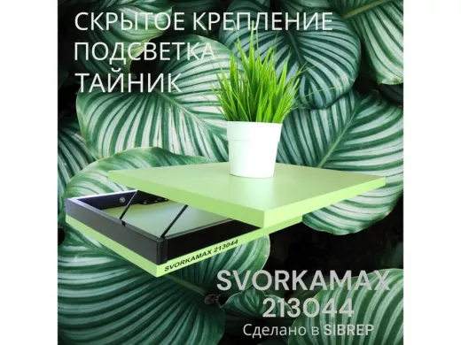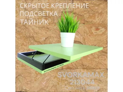 Парящая полка скрытого крепления с подсветкой и тайником, черный "SVORKAMAX 213044" 30х40, салатовый