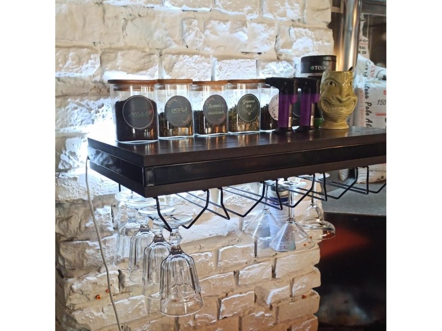 Парящая полка с подсветкой, тайником и держателями бокалов, черный "SVORKAMAX 213666" 60х30см, венге