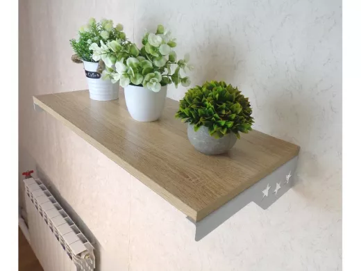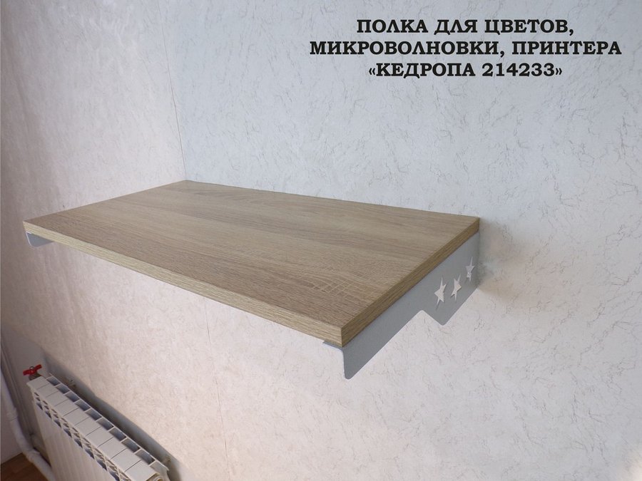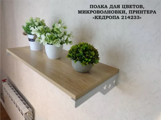 Полка предназначена для гостиной (можно разместить цветы, сувениры, фотографии), для коридора (под ключи, шапки, шарфы и перчатки), для детской (под рисунки, поделки, книги), для кухни (под микроволновку, чайник, посуду) и др.