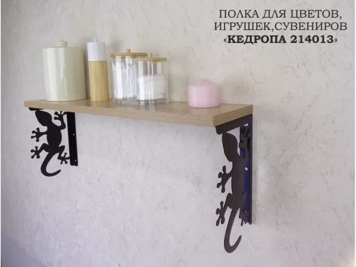 • Интересная полка с профилем гекона, позволит разнообразить интерьер, сделать его непохожим, уникальным, запоминающимся.
