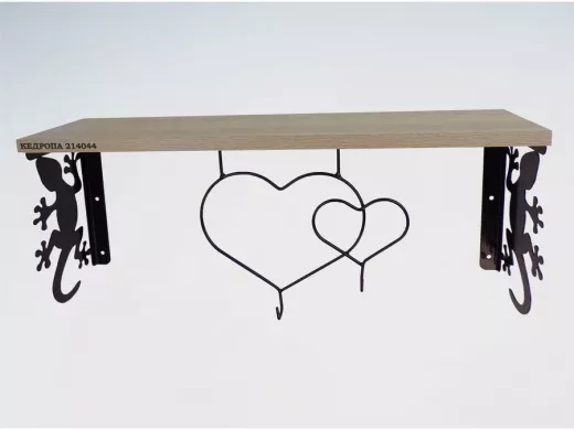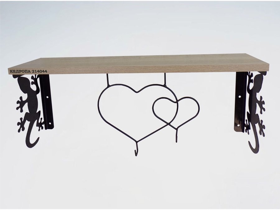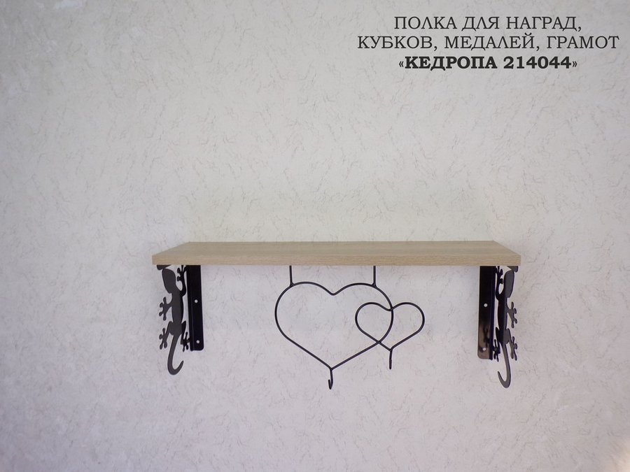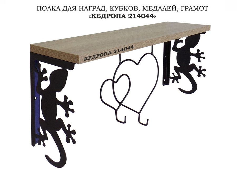 В корзину Купить в 1 клик Полка для наград, кубков, медалей, грамот "КЕДРОПА-214044 гекон" размер 15х60х24 см, дуб с сердцем
