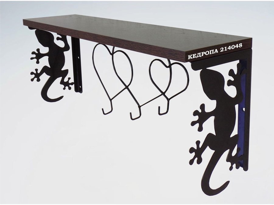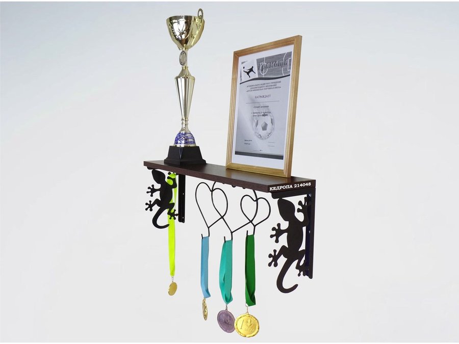 Полка для наград, кубков, медалей, грамот "КЕДРОПА-214048 гекон"размер 15х60х24 см, венге с сердцами