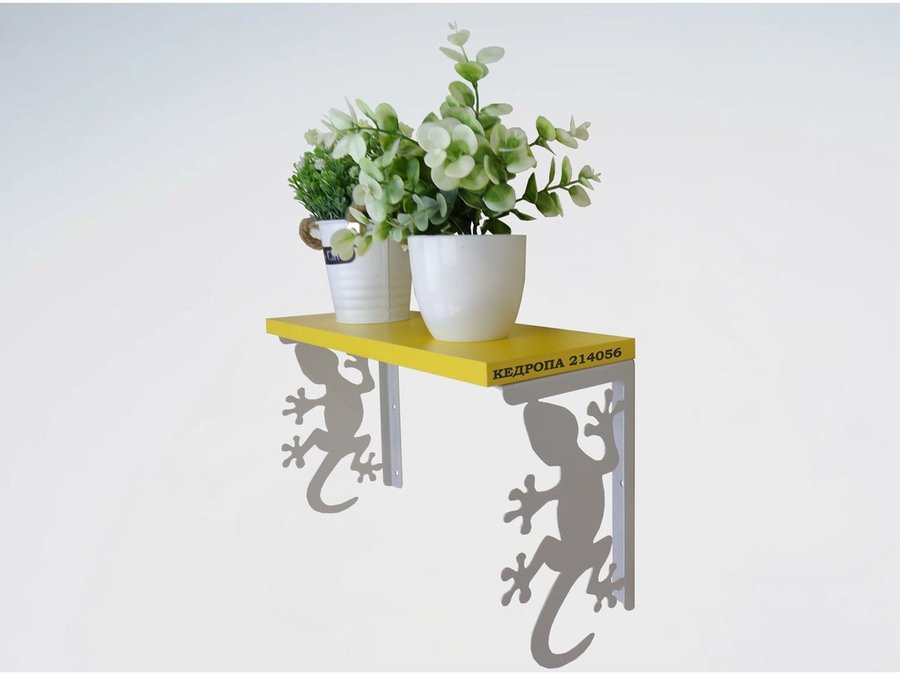В корзину Купить в 1 клик Полка для цветов, игрушек,сувениров "КЕДРОПА-214056 гекон" размер 15х40х24 см, серый, желтый