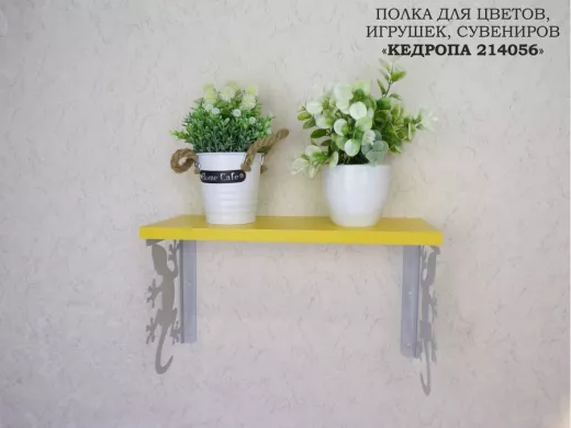 Полка для цветов, игрушек,сувениров "КЕДРОПА-214056 гекон" размер 15х40х24 см, серый, желтый