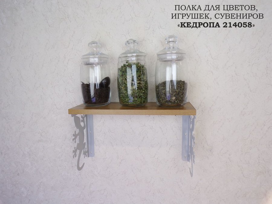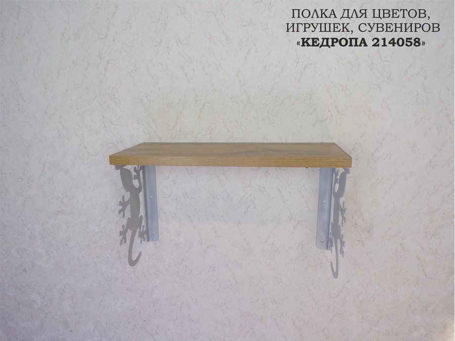 В корзину Купить в 1 клик Полка для цветов, игрушек,сувениров "КЕДРОПА-214058 гекон" размер 15х40х24 см, серый, дуб вотан