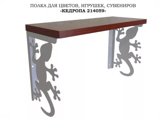 Полка для цветов, игрушек,сувениров "КЕДРОПА-214059 гекон" размер 15х40х24 см, серый, орех итал