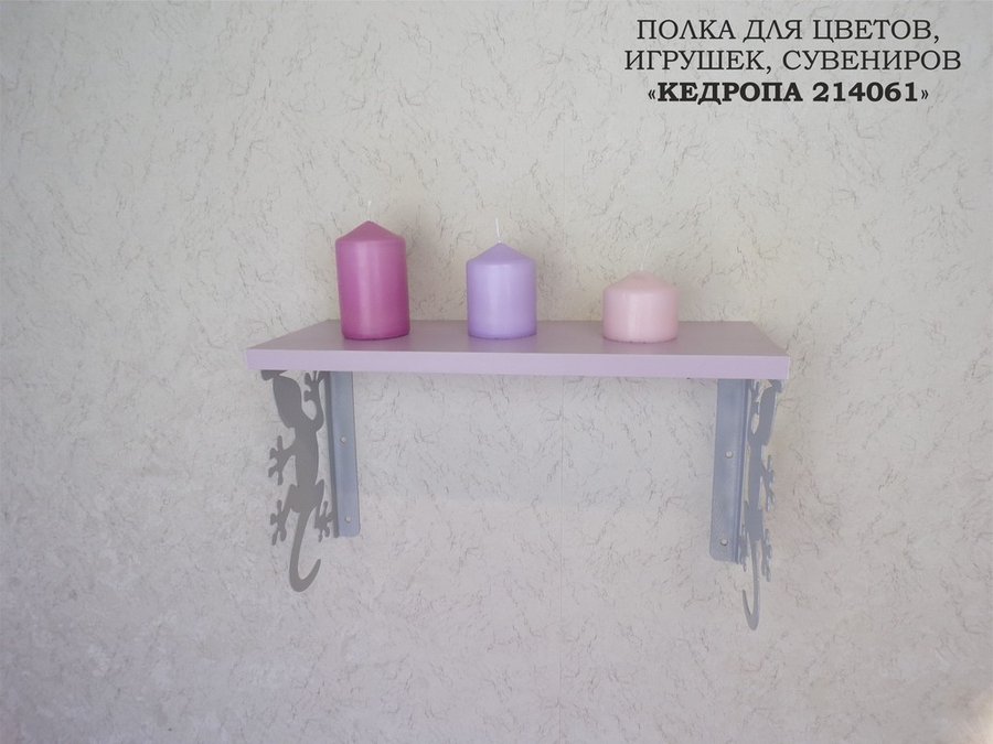 В корзину Купить в 1 клик Полка для цветов, игрушек,сувениров "КЕДРОПА-214061 гекон" размер 15х40х24 см, серый, лаванда
