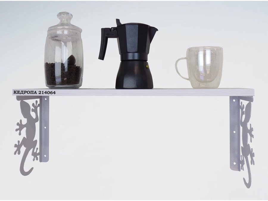 В корзину Купить в 1 клик Полка для цветов, игрушек,сувениров "КЕДРОПА-214064 гекон" размер 15х60х24 см, серый, сосна