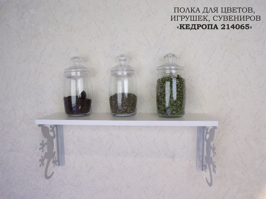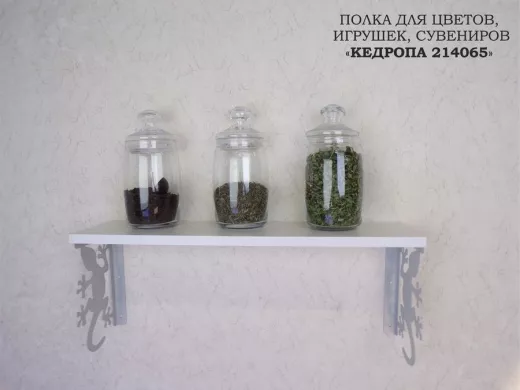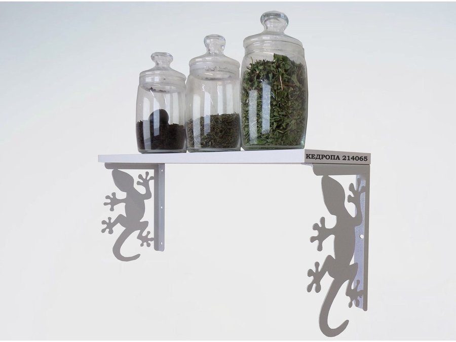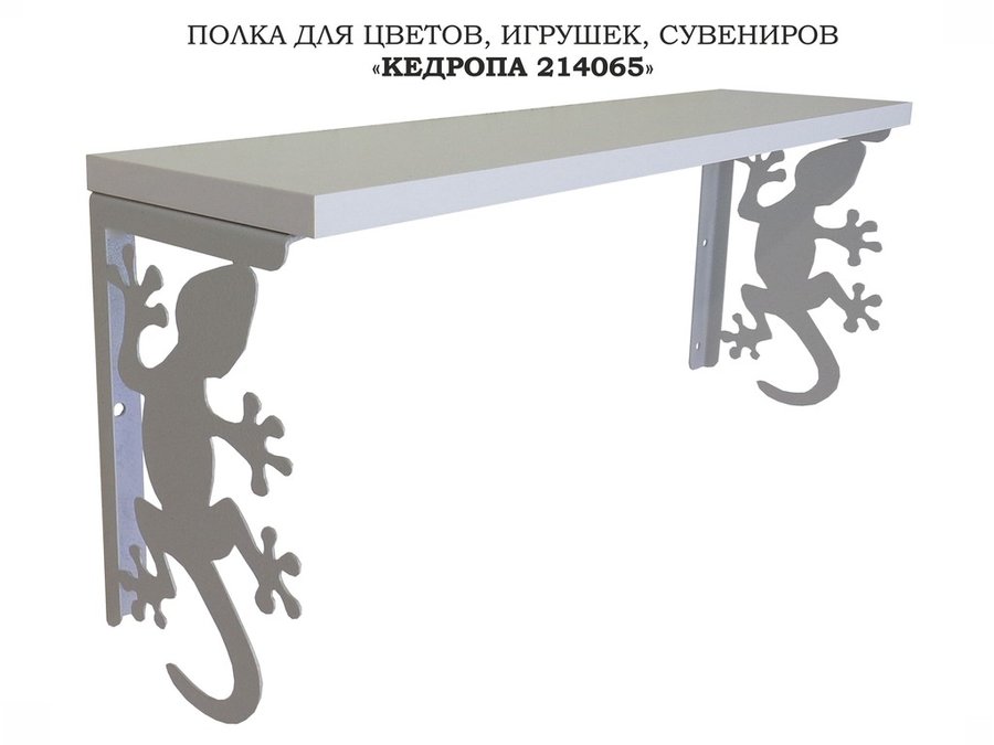 В корзину Купить в 1 клик Полка для цветов, игрушек,сувениров "КЕДРОПА-214065 гекон" размер 15х60х24 см, серый, белый шагрань