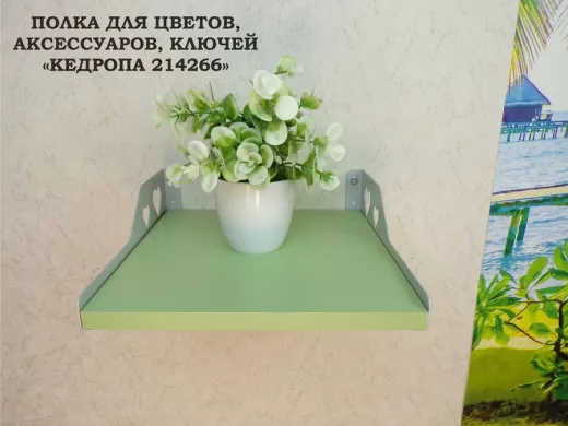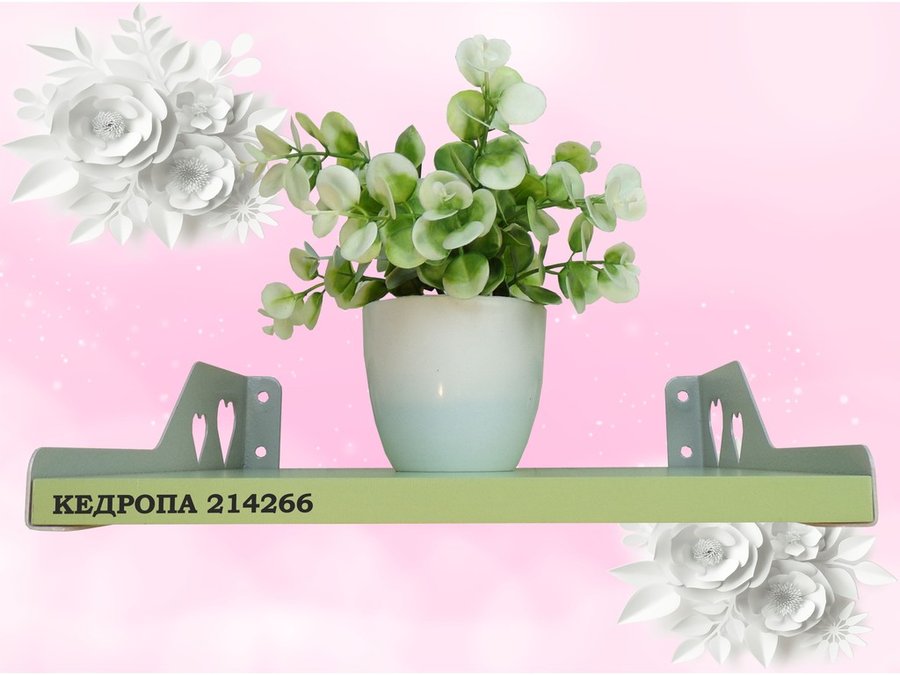 В корзину Купить в 1 клик Полка для цветов, аксессуаров, ключей "КЕДРОПА-214266" размер 30х30 см, салатовый, сердце