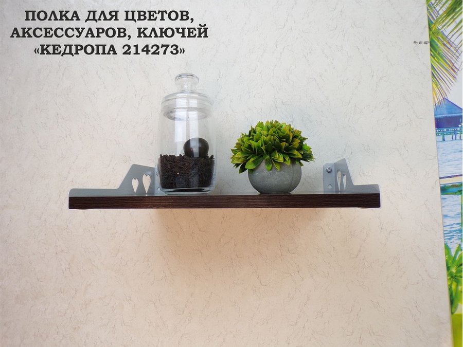В корзину Купить в 1 клик Полка для цветов, аксессуаров, ключей "КЕДРОПА-214273" размер 40х30 см, венге, сердце