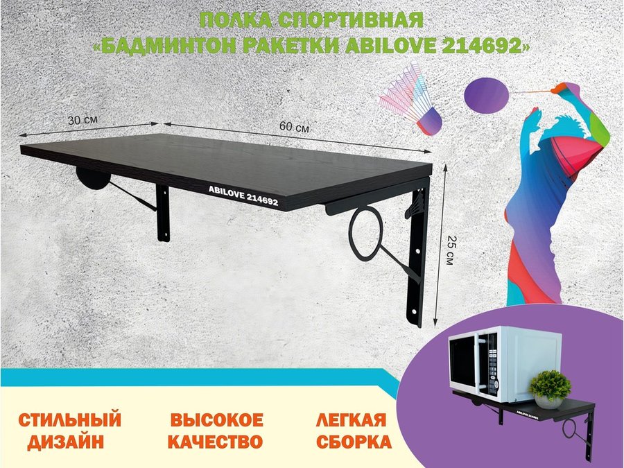 В корзину Купить в 1 клик Полка спортивная "БАДМИНТОН РАКЕТКИ ABILOVE-214692" для кубков, венге, размер 30х60см