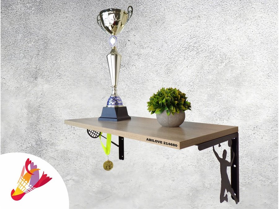 Полка спортивная "БАДМИНТОН ABILOVE-214680" для кубков, наград, медальница, дуб сонома, 30х60см